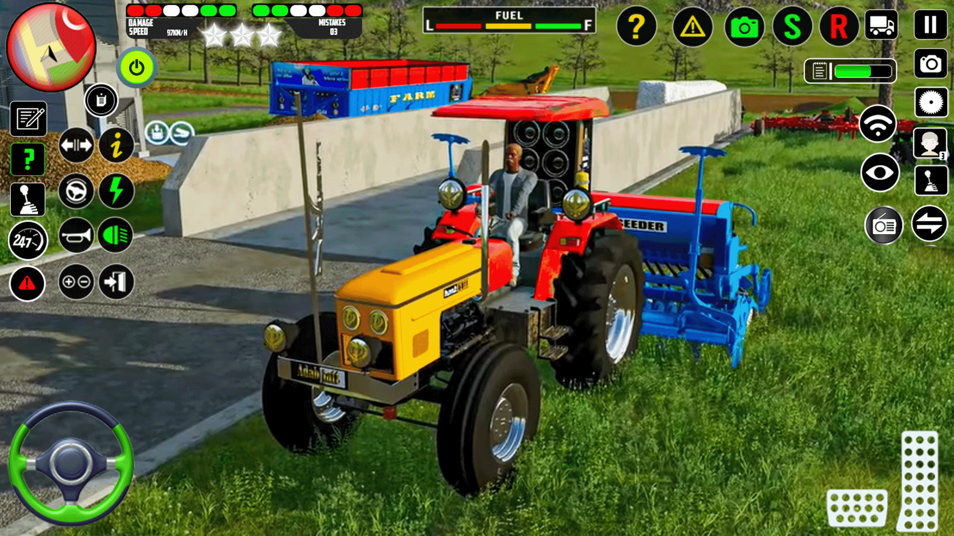 Here is the chance to become a real tractor driver in farming tractor simulator - tractor games. Drive chained tractor in off roads of village in tractor driving games 2018 and enjoy realistic environment with beautiful birds sound of tractor ka game. Smooth and relaxing music play in background oftractor farming games 2022. Real time tractor sound use with chained tractor towing of modern indian tractor games.
