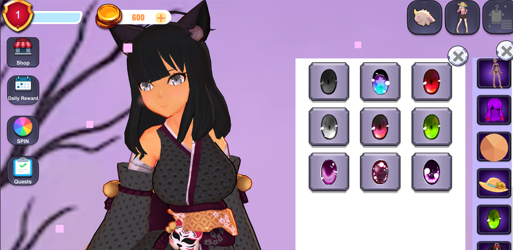Decorate your cute anime using lots of clothes, items, hair colores and items!