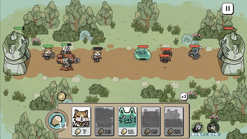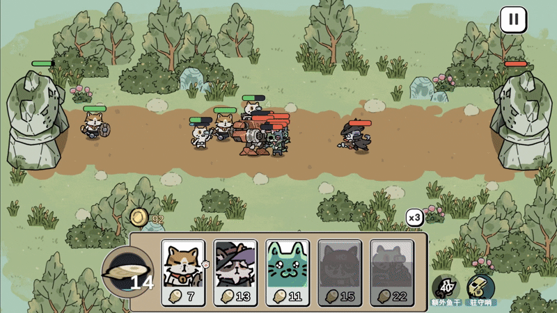 One scene is a straight duel against my current strongest DPS, the Gatling cat Bard. The mech locks on, shoots out a claw to drag Bard into range, and then just stands there trading hits until one of them goes down. It’s basically “high cost vs high DPS” to see who melts first.