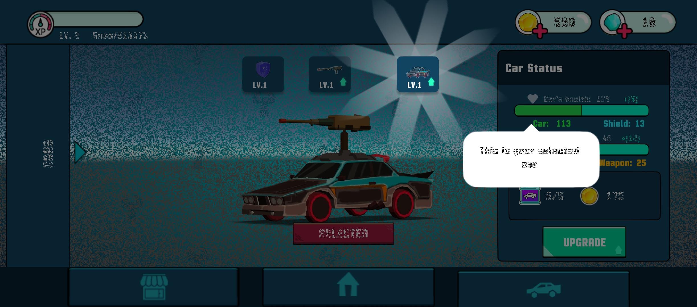 It could be better, but I ran into a few bugs and the whole experience wasn't good. This game's concept is not bad, mechanics like Archero where you select one skill out of three after completing a level. After that, you control your vehicle and shoot all of the enemies while avoiding attacks.