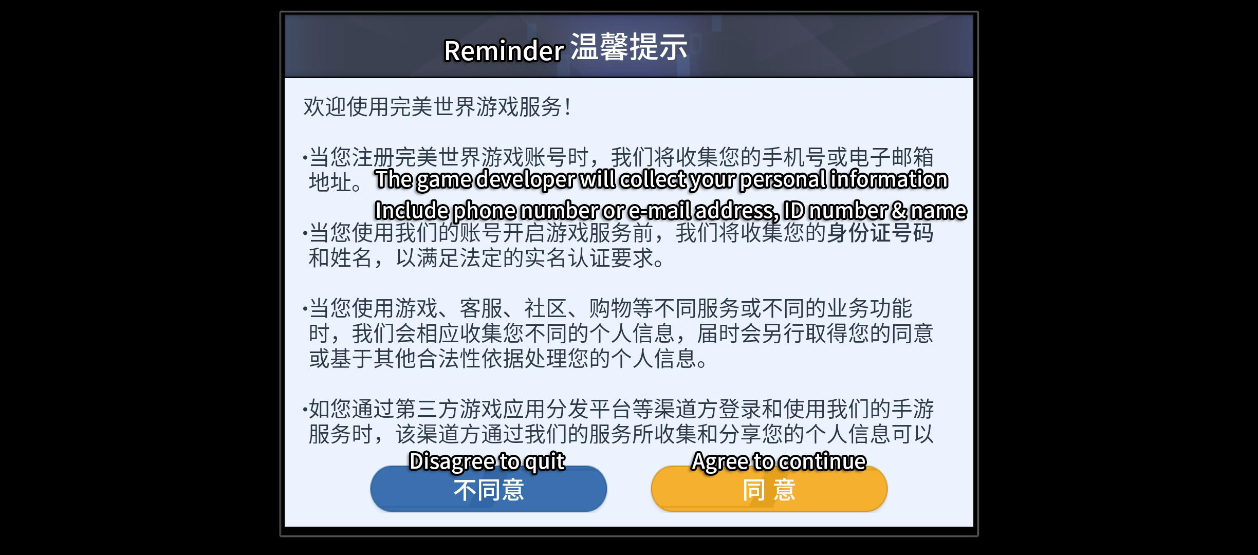 1. This is the Reminder interface. Click 'Agree' (yellow) to continue.