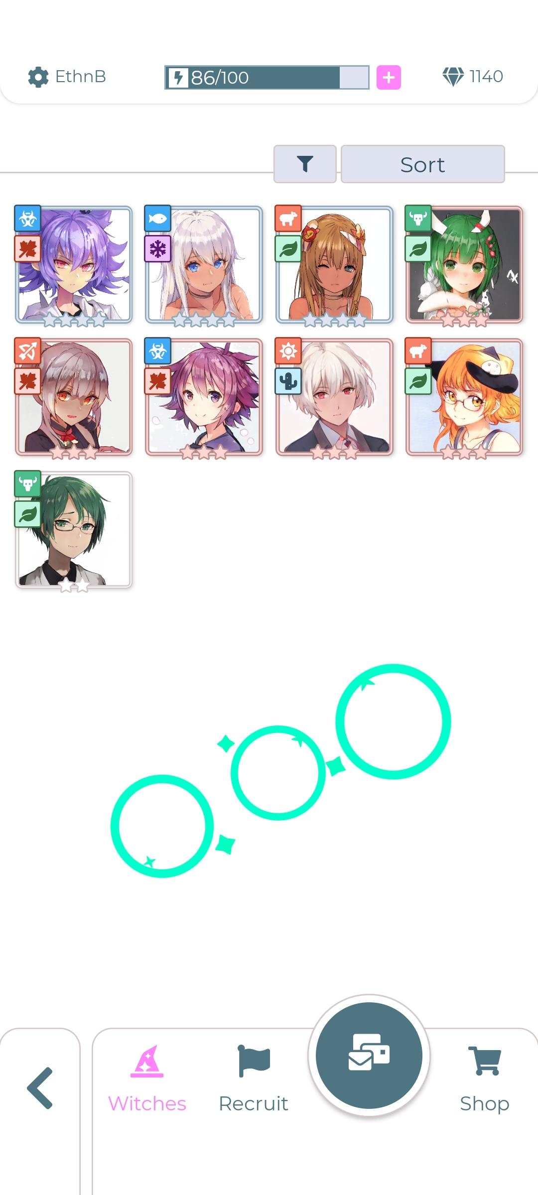 เราสามารถหาแม่มดใหม่ๆ มาร่วมทีมได้ด้วยการ Recruit ซึ่งต้องใช้เพชรในการอัญเชิญ และก็เหมือนเกมสไตล์นี้ทั่วไปที่ฮีโร่หรือแม่มดแต่ละตัวก็จะมีความต่างของเรื่องคลาสและดาว ที่เราจะได้รับด้วย