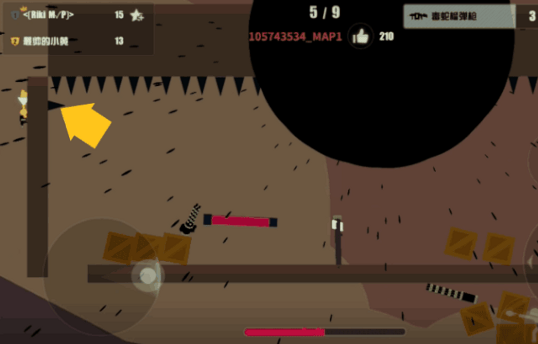 比如這局:黑洞在右上方出現了,當大家驚慌失措的時候,機智的小黃爬到了地圖的左上角,利用堅實的牆壁抵擋黑洞的超強吸引力,坐收漁翁之利。