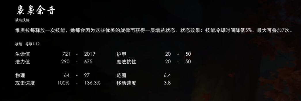 維奧拉為接觸到大招的所有友方單位提供冷卻和攻速屬性,加成持續5秒。