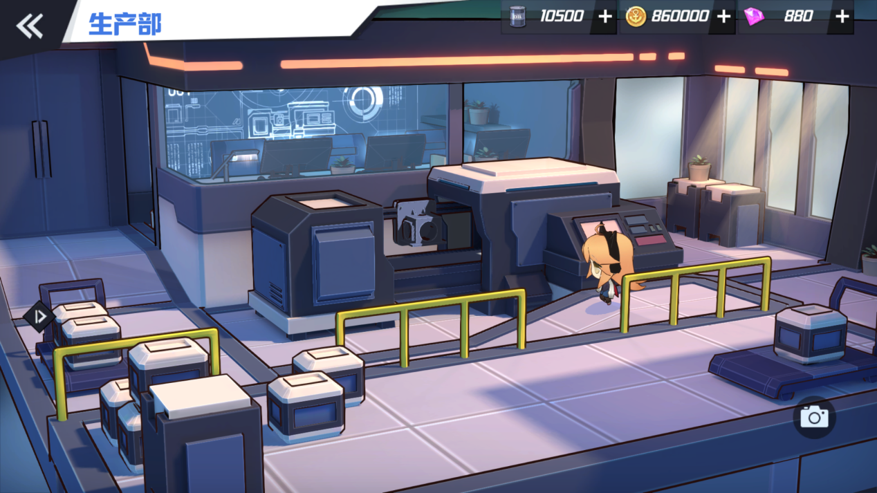 在豐富的場景細節之外,基建場景更加載有可互動的動態特效。而奧斯能源室、煉油廠等生產區域模擬了真實的工業場景,生產平台跟隨生產進程發生實時位移,入駐的戰姬能夠與場景物件展開交互,展現基建運作中的生命力。
