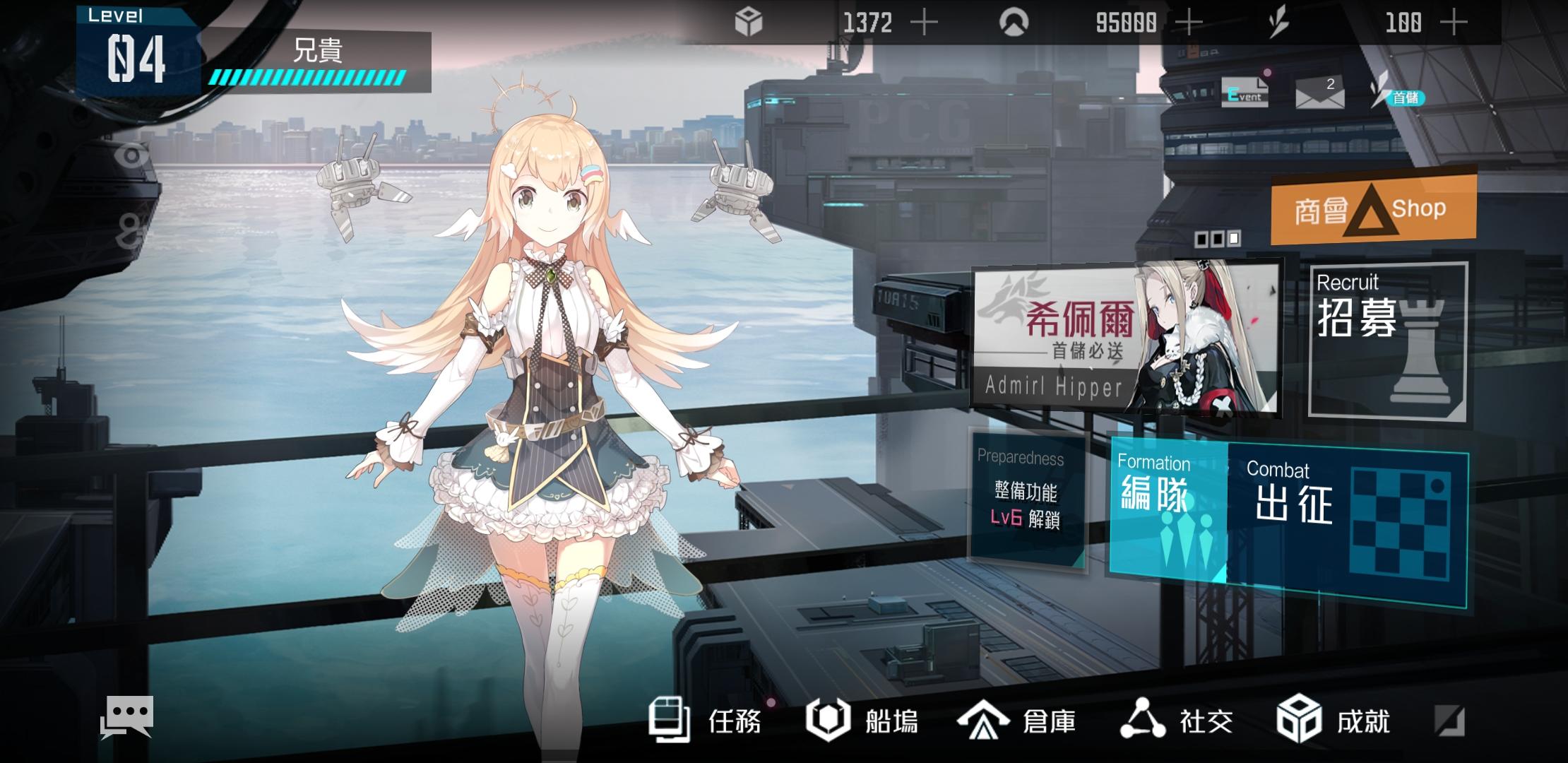 遊戲進入之後,等待畫面很中規中矩,其實很有少女前線或是明日方舟的色調,但是有很多西洋棋的元素在上面,遊戲內的UI很多很小、寫的不是很清楚,尤其是造船這個使用證還有鑽石就很不直觀,有時候我根本不知道我還有多久可以十連。