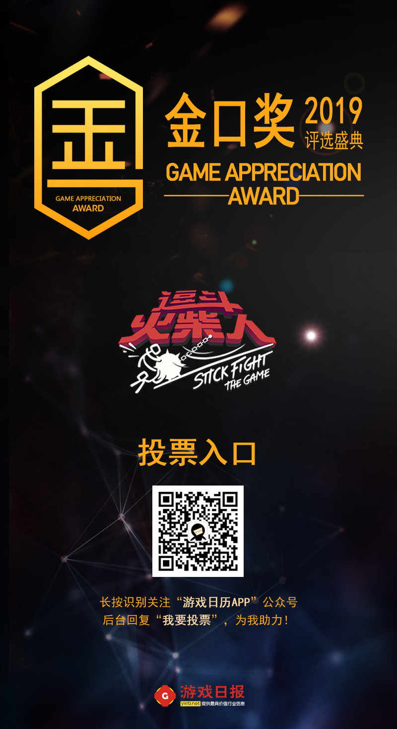 接下來就是小黃的拉票時間!第六屆金口獎評選盛典火熱開啟中~金口獎是發掘推介優秀高品質的文化娛樂產品的專業評選獎項,《逗鬥火柴人》入圍了“2020年期待產品”獎,希望各位兄dei都能前來投票,助力火柴人角逐盛典大獎! 【投票方式】:①點擊鏈接https://www.youtoupiao.com/vote/review/id/101e4857fe10297b.html,搜索“逗鬥火柴人”進行投票;②長按掃描下方二維碼,後台回复“我要投票”;你不投,我不投,火柴人何時能出頭?這個牌面能不能安排上,就看各位兄dei啦~(手動狗頭)