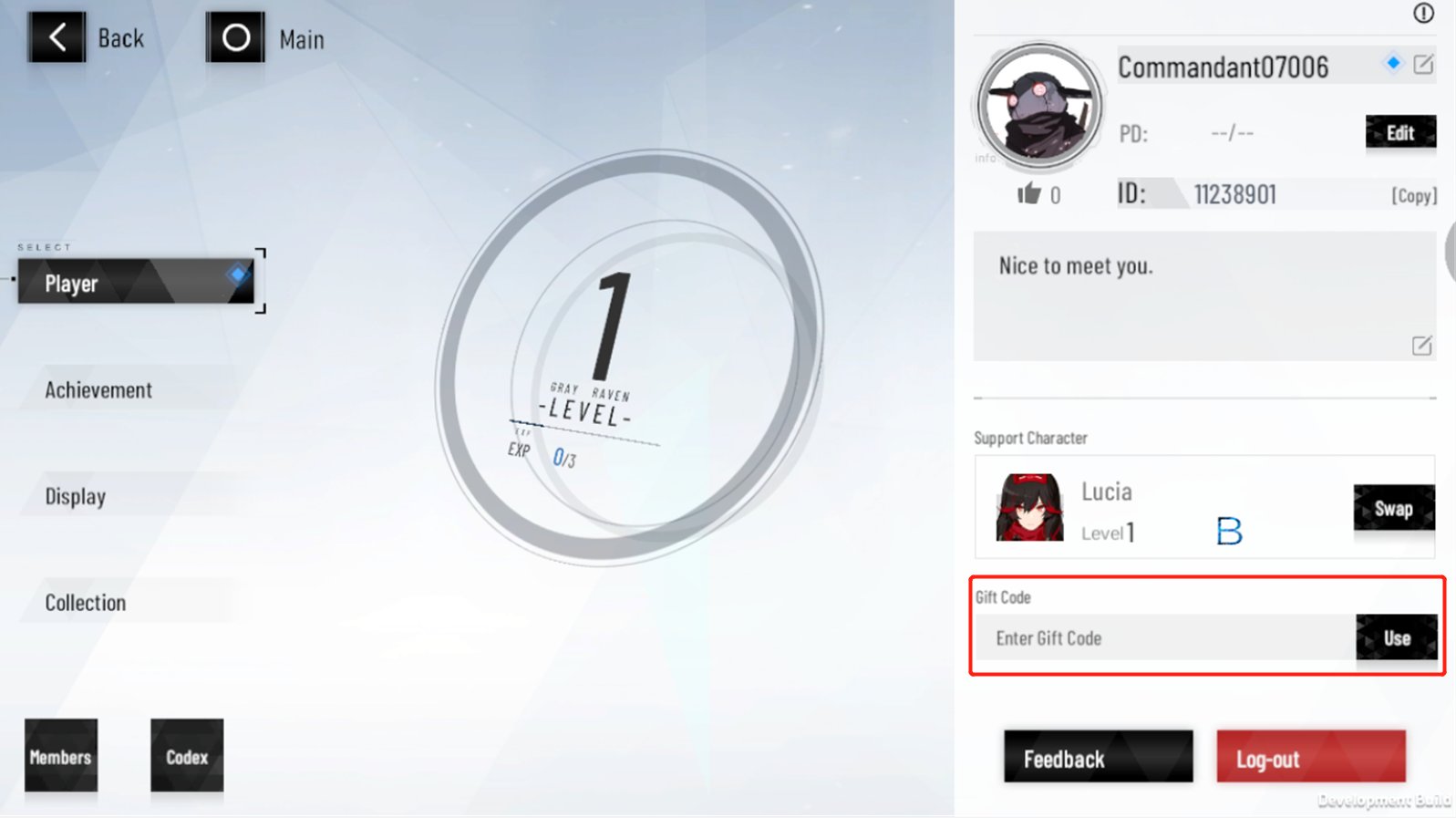 1.Tap on the top left area of the main screen to open player profile, once you start the game and pass stage 1-2. 2.Tap on the input box on the right to enter the gift code and redeem rewards.