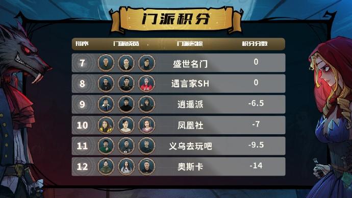 WPL2019線下淘汰賽門派積分排行榜