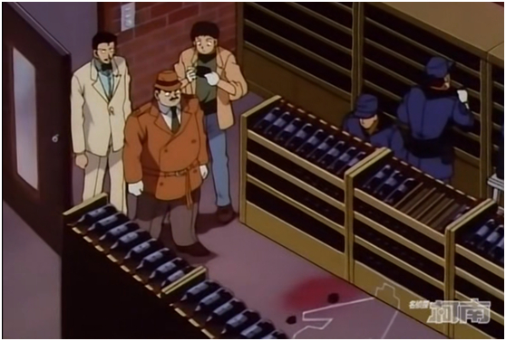 看起來十分燒腦的一次密室案件,由於被害人屍體處於酒窖中央,四周既沒有打鬥的痕跡,也沒有外力入侵的痕跡,再加上酒窖裝有十分健全的安保系統,而能夠正常進出酒窖的鑰匙又留在了被害人的身上,因此一個看似十分“完美”的密室就此行成了。在這起案件的設計上,作者其實利用了觀眾的“慣性心理”。對於大多數人來說,往往會下意識地認為“親眼所見即為真實”,但在隨後柯南的推理過程中,我們發現其實本案的作案地點並不在酒窖內,兇手在室外行凶後,又巧妙地利用晾衣桿將屍體運送回了酒窖內,並製造了一個看起來十分完美的“密室”。