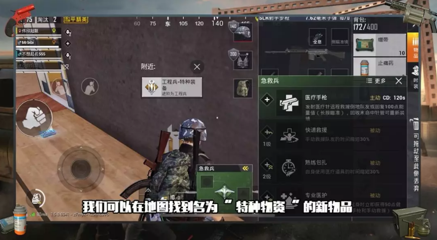 拾取對應的特種裝備,你可以成為突擊兵、後勤兵、機動兵、急救兵、工程兵其一。