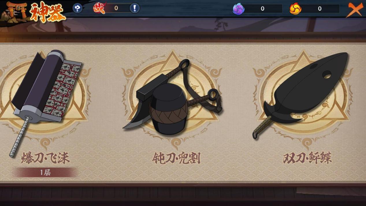 神器系統內學員們將會看到稀有的神器忍具
