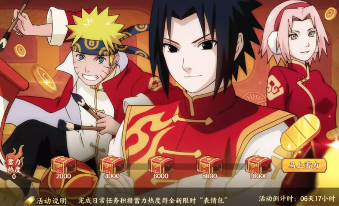 活動說明:每天完成指定活動任務,可獲得限時兌換道具“親熱天堂"、"親熱暴力"和"親熱戰術",兌換忍具、忍具鍛造石等獎勵!