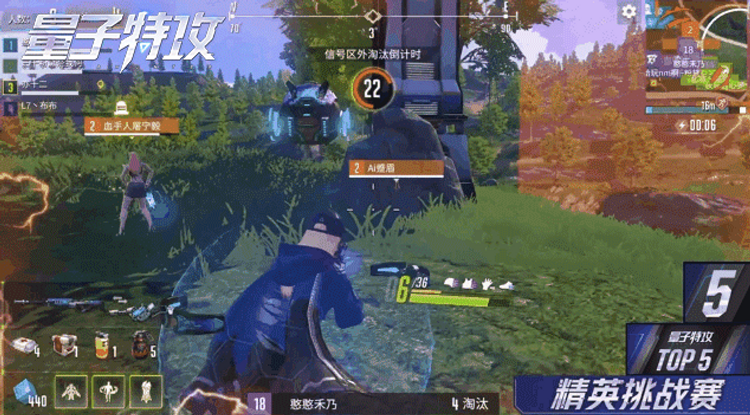 BIU戰隊[/b]隊員“服軟”埋伏在風車頂部旁觀下方隊伍火拼,Style戰隊收掉殘兵後,縮進掩體進行修整,此時BIU戰隊“服軟”選手一躍而下,展開滑翔觀察對手位置情況,落地掏出重武器驚艷開火!以對方完全來不及應對的角度和方式,一炮三響直接滅隊,瞬間爆炸,成就賽場王牌!