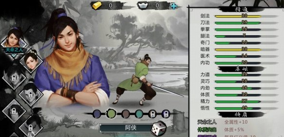 選擇哪一類武器,往往決定了你在這一輪遊戲中的戰鬥風格,這些武器招式和武學路數,都和力道、靈巧、內勁等6項基礎屬性息息相關,不同的武學招數、內功段數之間的搭配,都可以產生不同的效果。