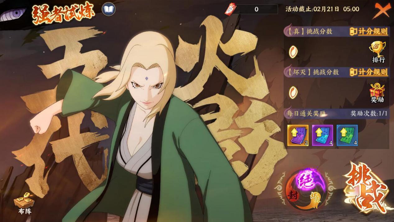 活動說明:綱手[五代火影]強勢來襲,準備接受她的試煉吧!