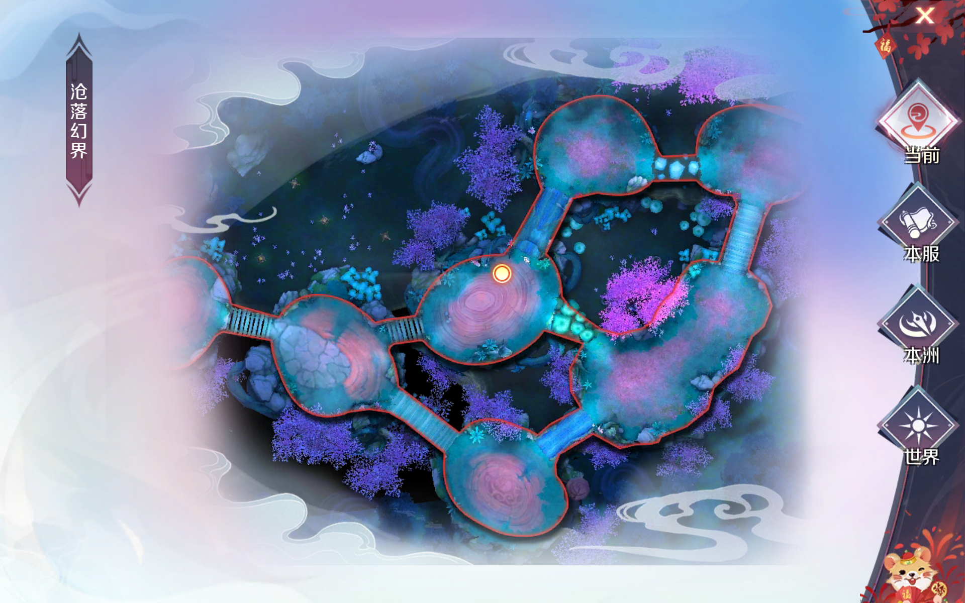 夜櫻蔓蔓,流水潺潺,一輪圓月照應之下,影隨風動,廣闊的倉落幻界內暗藏玄機…在滄落幻界中,靈主可使用道具【滄落召喚卡】,就可以召喚出一隻名為“紫薇靈獸”的boss,打敗它有機會獲得【妖神聚靈石】、【化神裝甲】的等珍稀道具~