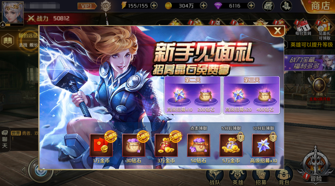 新手首日登錄即送十連抽,接連三天狂送4次十連抽,助各位守護者抽取強力英雄守衛亞特蘭蒂斯【沖級即送VIP】