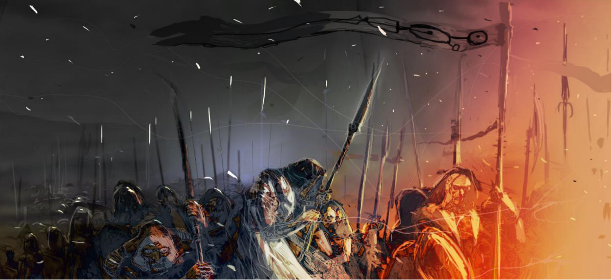 由於西部城市爆發了瘟疫,人類向神祈求生存。瘟疫之神化為救世主,接受神之祝福的人變成瀆神者,聽從神的旨意,集結成軍隊,抵達戰場,人類士兵死傷慘烈。邊境守衛向國王請求增援,國王派出軍隊支援。因為命運的選擇與無所畏懼的精神,我們的男主卡奧斯扮成士兵混入軍隊中,一同出征。