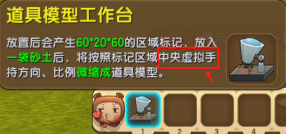 只要放置工作台,在虛擬手臂中搭建方塊,就可以設計出自己想要的道具外型了