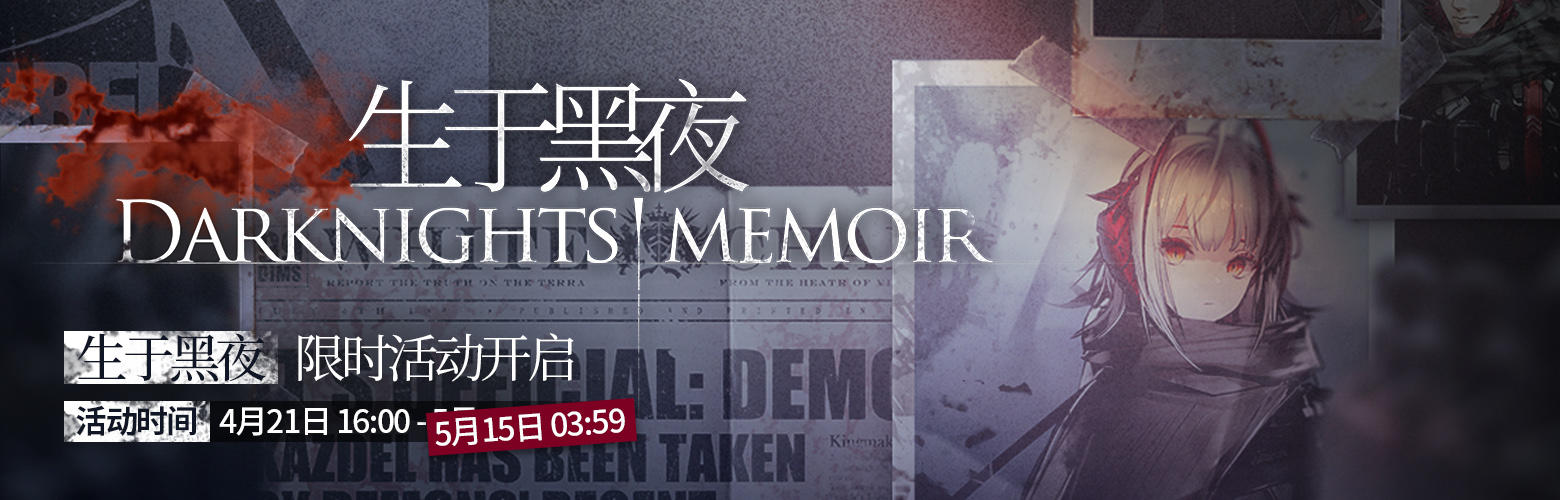 注意:新增幹員【鑄鐵】僅在本次「生於黑夜」活動中獲得。暫不加入【往日幻象】及任何【標準尋訪】