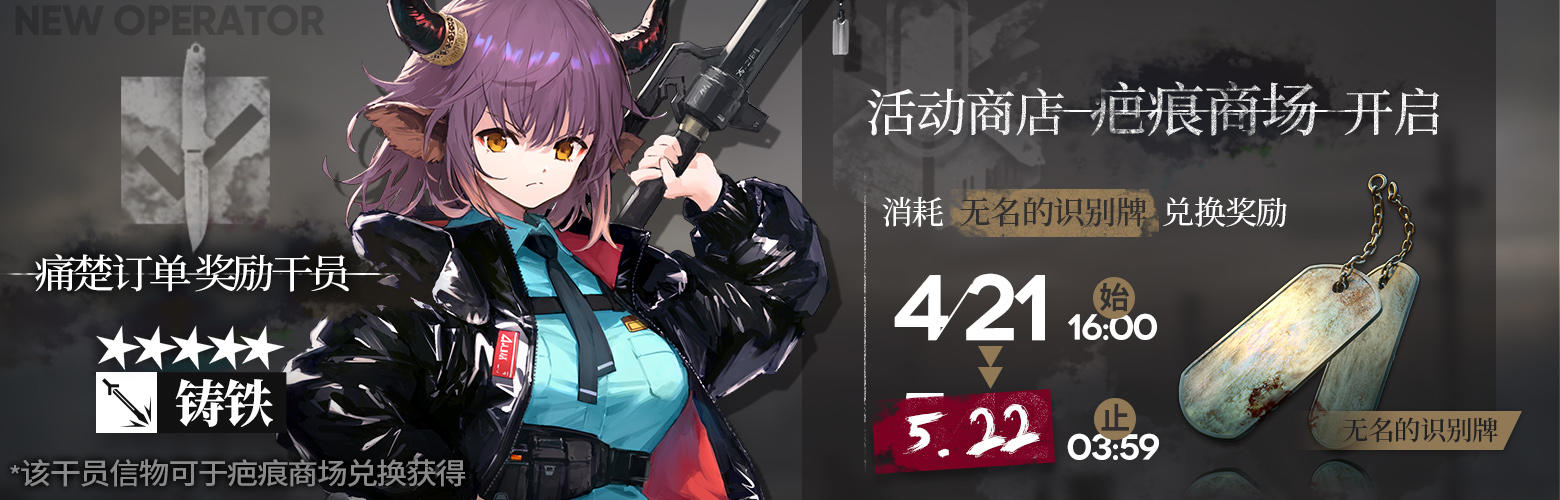 主要獎勵:活動干員【★★★★★/鑄鐵】、【七城風情餐廳】家具(部分)、【無名的識別牌】