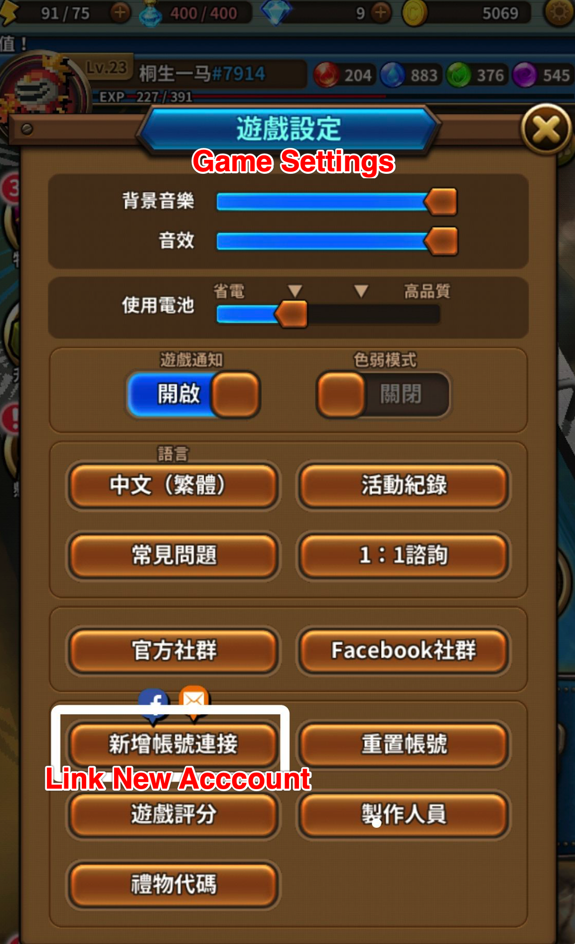 1. In the "Triple Fantasy" Google Play version, fill in the mailbox and complete the verification by "Game Settings (遊戲設定) - Link New Account (新增賬號連動)".
