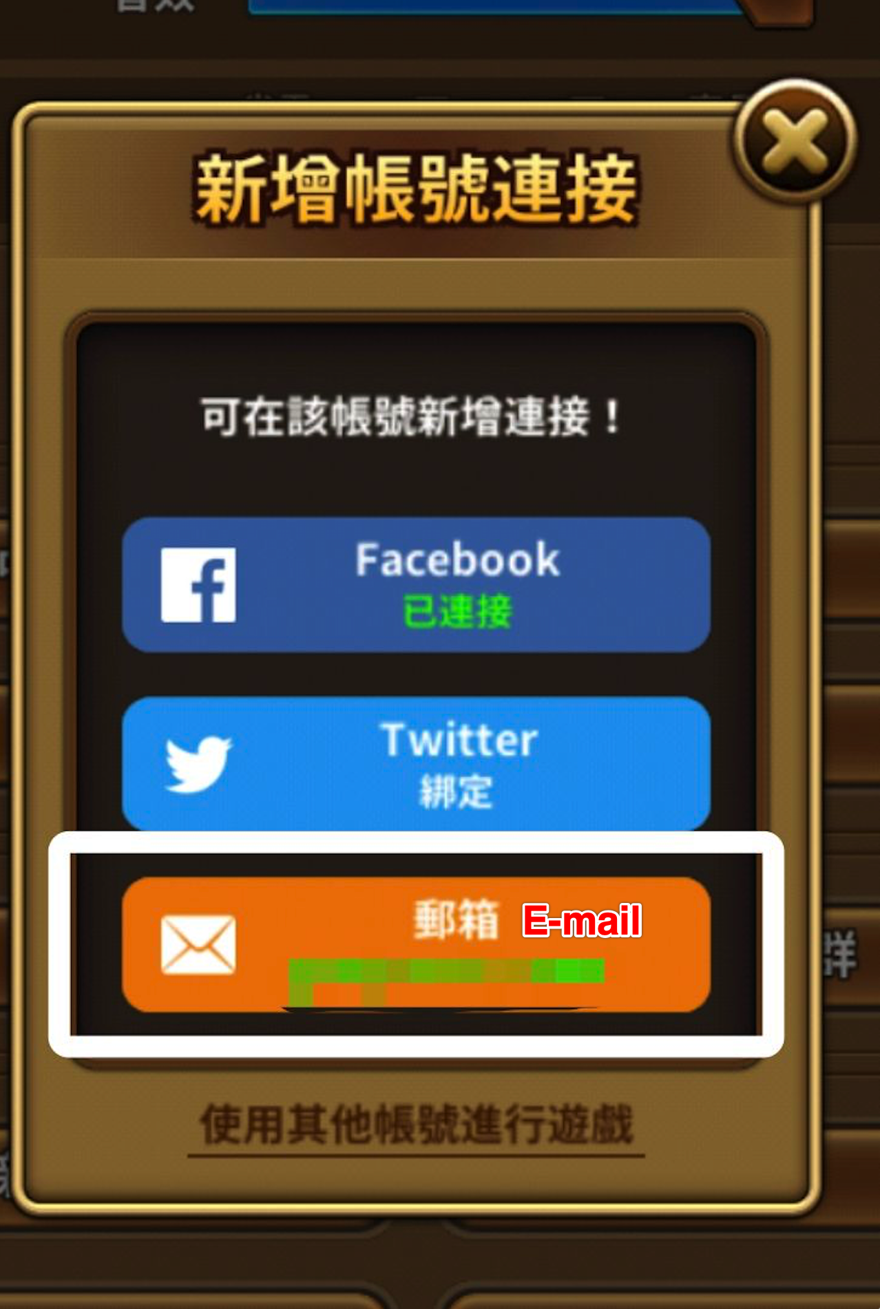 Currently, an error occurs when an account is attempted to link through Google. It is recommended that players connect their previous accounts through E-mail. (Facebook & Twitter can also be used to link) Please refer to the following steps.