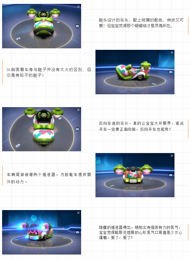 綜合來說,膠鞋車雖然造型搞怪,但技能實用,比較適合用來領跑,各位喜歡在道具賽中領跑的車友可以考慮一下~