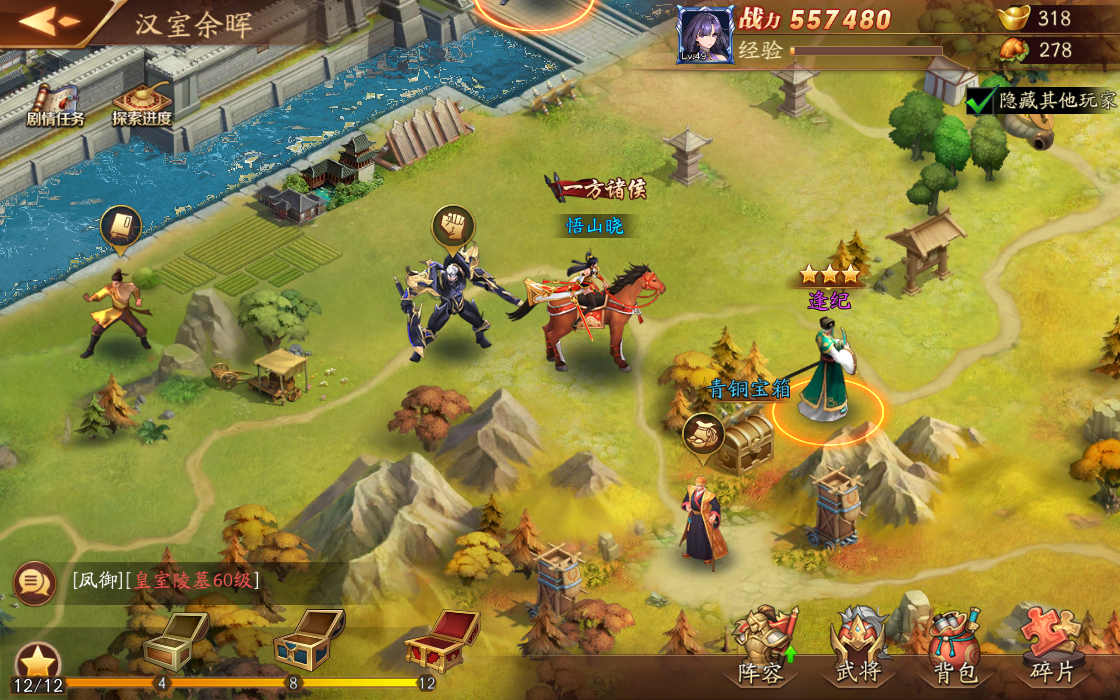 《放開那三國3》每一章節副本都有面積約為8屏的可自由探索大地圖,在地圖的各處分佈著多個拾取點,玩家點擊即可獲取元寶、銀幣、武將碎片等資源。常見的拾取點比如寶箱,推進主線任務即可解鎖;而更價值更高的神秘寶箱則有專門的寶箱守衛鎮守,需要擊敗他們才能獲取其中的寶物;還有更多隱藏在獸骨、地縫中的拾取物品,需要玩家仔細尋找;運氣好的玩家甚至能夠找到地圖中的隱藏點開啟神秘地圖,將大量寶藏據為己有。