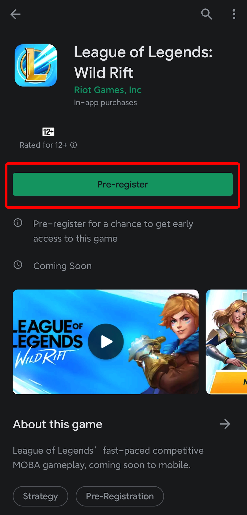 How to pre-register "League of Legends: Wild Rift" on Play Store: