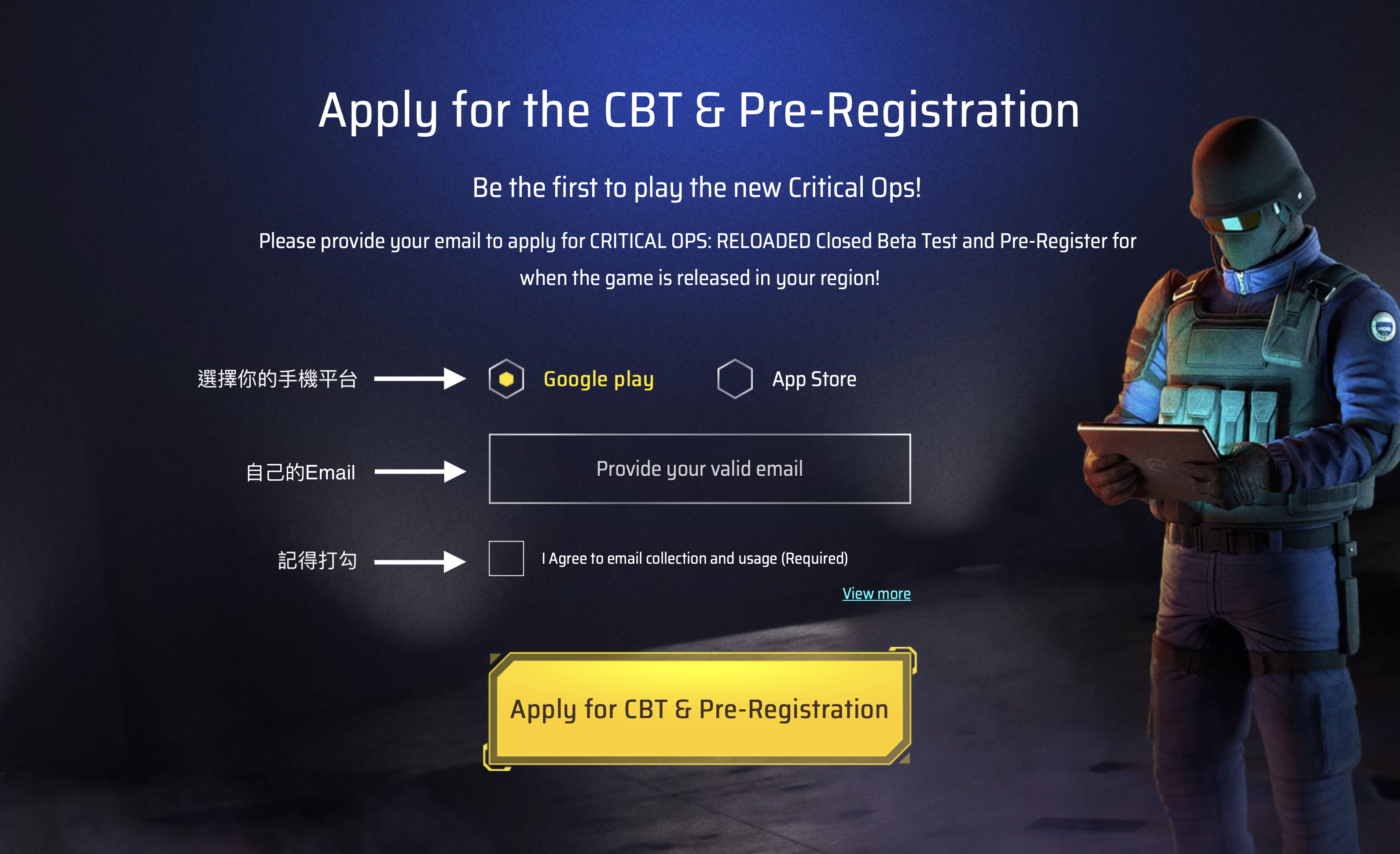 欲參與CBT封測的玩家請前往官網,選擇手機平台,並且填寫Email即可申請封測資格並且預先註冊遊戲。https://c-ops.hangame.com[b]