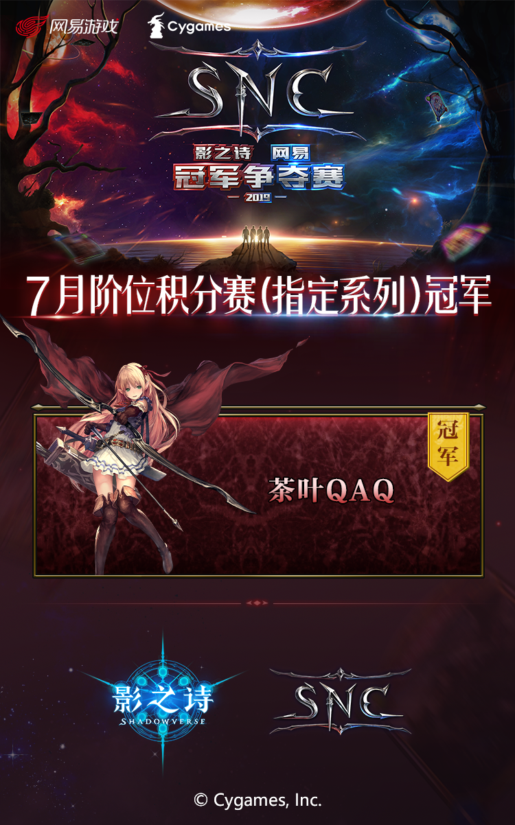 巔峰競技,決勝分毫!維他檸檬茶,夠真才出澀。《影之詩》SNC 7月階位積分賽,由賽季指定飲品真茶真檸檬的維他檸檬茶全程支持。 《影之詩》網易冠軍爭奪賽(SNC)7月階位積分賽經過上週末持續兩天的激烈角逐,終於落下帷幕。最終愛衣醬與茶葉QAQ技高一籌,分別獲得了無限制與指定係列的冠軍。各個名次的選手也用實力和成績,獲得了相應的SNC積分,向海選終輪繼續前進!