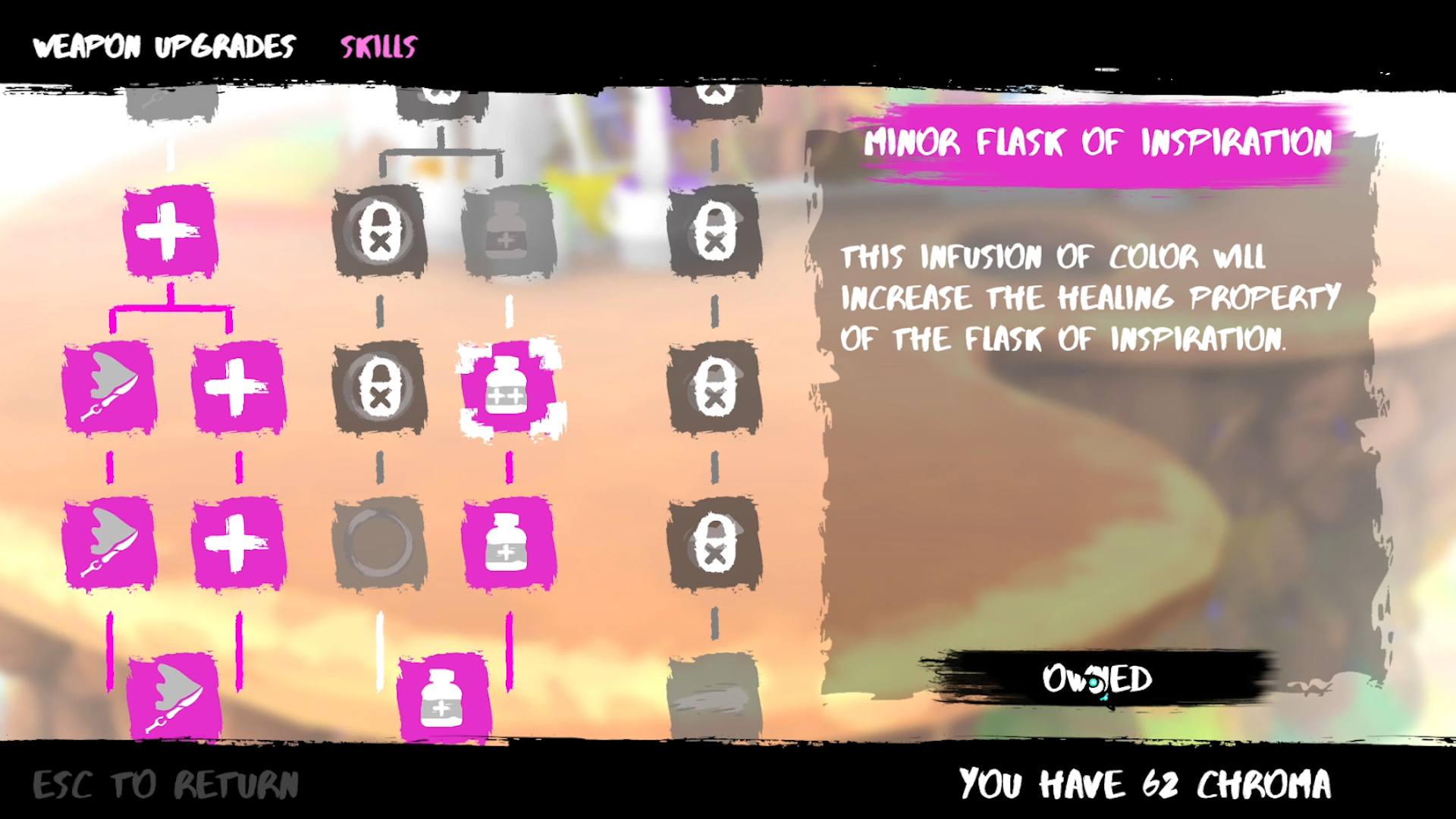 That said- you -can rectify this situation on a number of levels. For instance, if you use a save point /respawn Canvas you’ve already activated, you gain access to an upgrade menu. I sort of felt the need to specify this process, because it was -well- into the game's third area before I stumbled onto it, since I never had a reason to tag an activated Canvas before this point.