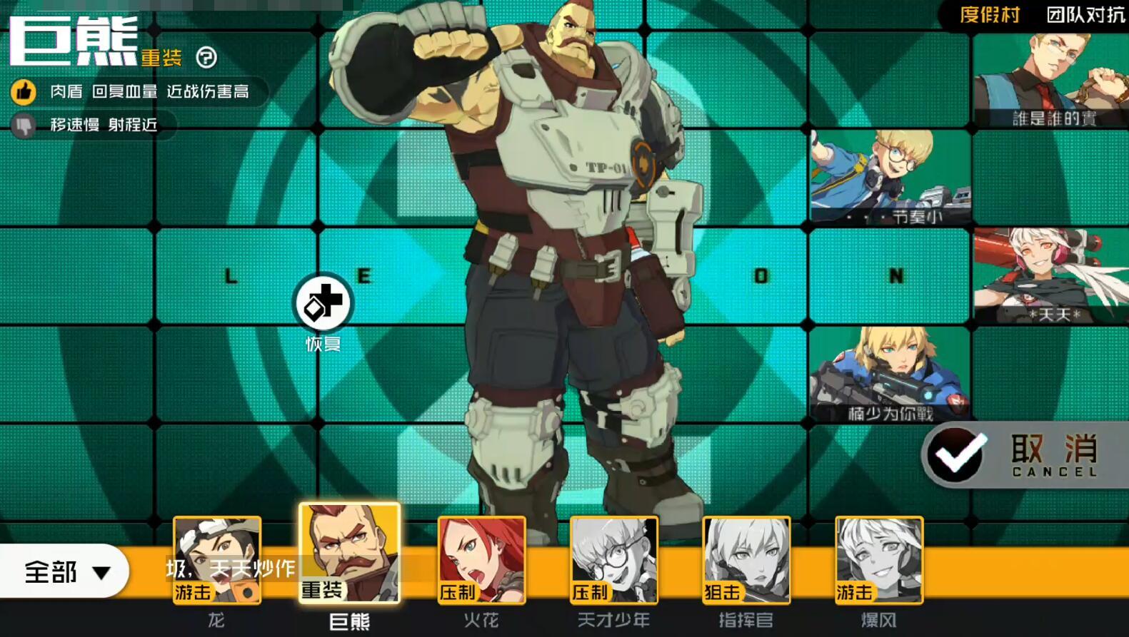 遊戲裡的英雄有五類,分別是:游擊、狙擊、重裝、壓制和突襲。