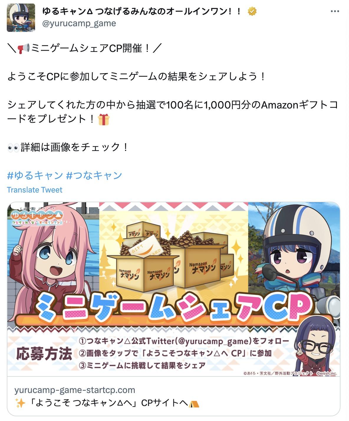 目前官方推特正在舉辦網頁迷你遊戲活動「歡迎來到 相約露營△」,只要參加活動並分享迷你遊戲的結果,就有機會參與抽獎。
