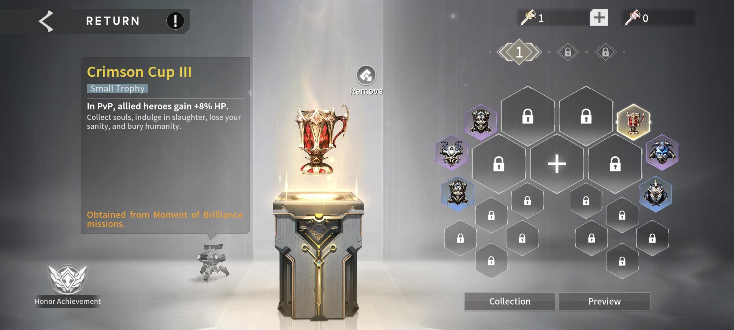 - By completing the achievement tasks and collecting tokens in the Hell Arena, you can get a variety of high-quality trophies of different sizes.