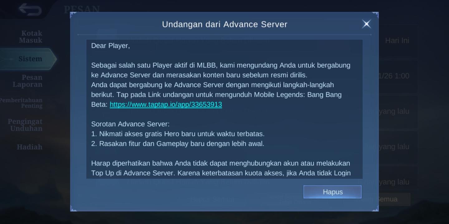 I Get Invite From Moonton To Test Advance Server Beta.