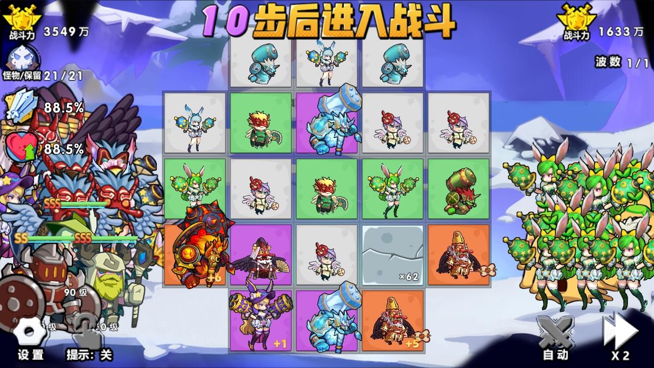 比如上圖,消除版塊裡,3號位的天狗已經合出了橙色,還有幾個紫色。而接下來你要面對的是死神這種遠反型。就算你合一張紅色天狗,面對380級x8的死神,治療根本無法阻擋對方打破你前排在收割你的命運,這種情況放射手是完全沒有意義的。