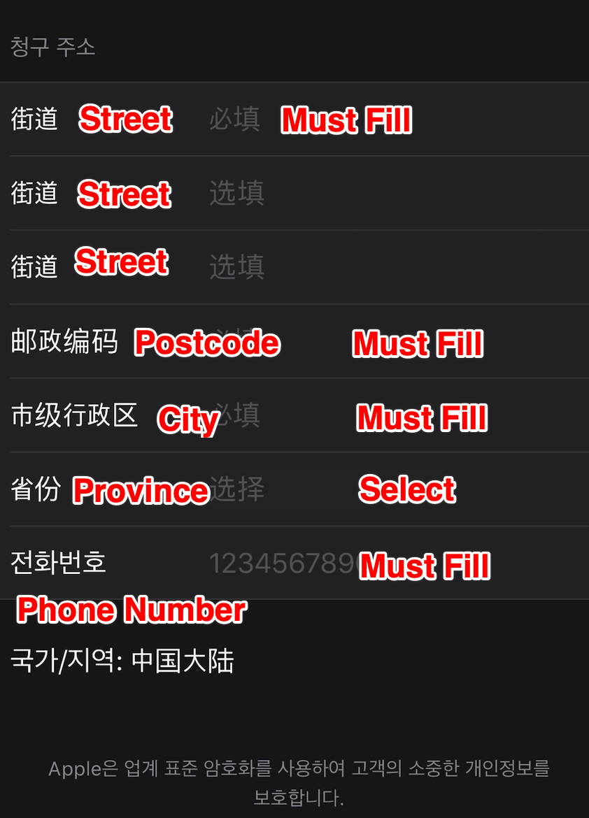 [b]3. Change Country or Region - Select 'China mainland', you will be guided to the page where you need to fill payment method and address, phone